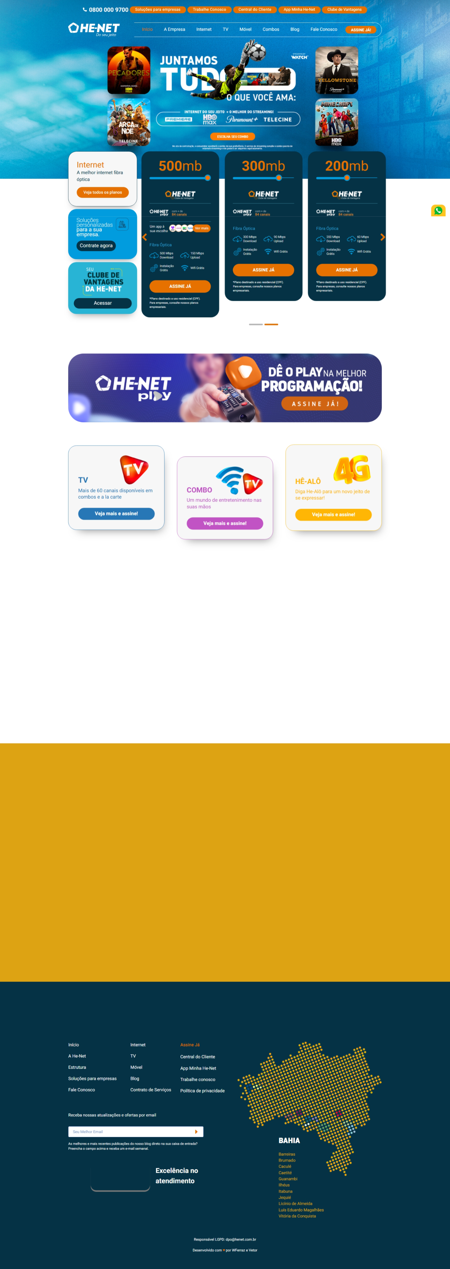 Desenvolvimento do website do maior provedor de internet da região em parceria com a wferraz